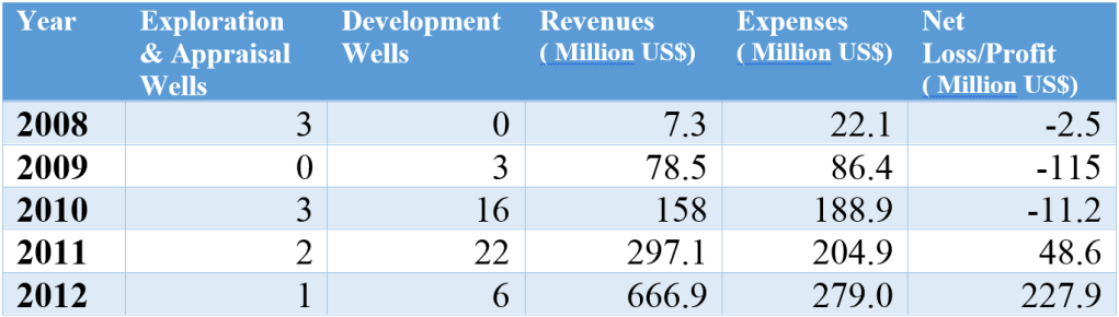 We know from Coastal corporate Annual Reports between 2008 and 2012 [12] that Coastal accumulated net losses between 2008-2010 of approximately -$130 million and net profits between 2011-2012 of approximately +$275 million. We do not know Coastal expenses in 2013 and onward but we know Coastal revenues before paying royalties to the Thai government between 2013 and 2018 from the Thai DMF Annual Reports. If we assume the same expenses and royalty levels in 2013 than in 2012 and trust the production numbers Coastal reported to the DMF we can estimate that Coastal net profit in 2013 just before the sale to CEPSA must have been around $260 million.