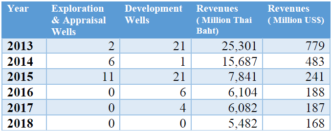 [6] Thailand Department of Mineral Fuels 2008 Annual Report; 2009 Annual Report; 2010 Annual Report; 2011 Annual Report; 2012 Annual Report; 2013 Annual Report; 2014 Annual Report; 2015 Annual Report; 2016 Annual Report; 2017 Annual Report; 2018 Annual Report (Thailand Ministry of Energy). These documents are available for public download at www.dmf.go.th