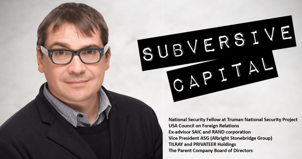 Michael Auerbach who defines himself as an “entrepreneur, investor, business consultant, and private diplomat” was a Foreign Policy and National Security nerd who surprisingly was also a fellow at the Truman National Security Project, which as we already mentioned earlier works in tandem with the Truman Center for National Policy [`17]. Auerbach was also a fellow of the USA Council on Foreign Relations. In 2012 Auerbach became Senior Vice President of the Albright Stonebridge Group [18] (a premier global strategic advisory and commercial diplomacy group founded by ex-Secretary of State Madeleine Albright that has seen several ex-employees join the Biden administration in top positions) [19]. In 2013 Auerbach founded Subversive Capital dedicated to invest in radical companies that require sophisticated regulatory strategies (i.e. cannabis). He also sits on the board of Privateer Holdings, Tilray, Duco Advisors.