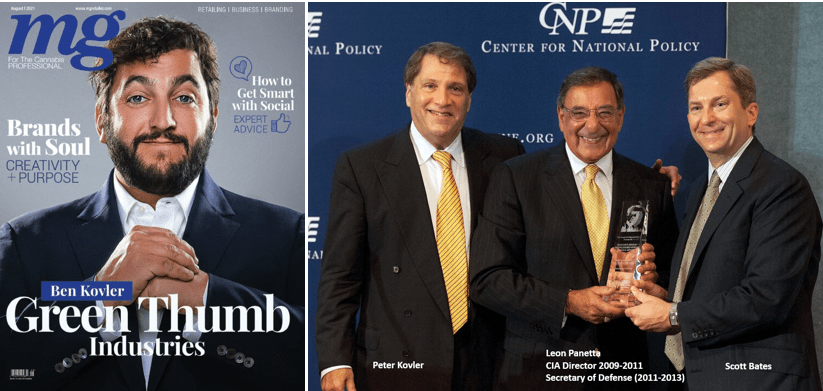 Ben Kovler is the co-founder and chief executive officer at Chicago-based Green Thumb Industries, which launched in 2014 [8]. Over the past eight years, Kovler built one of the largest multistate operators (MSOs) in the USA, with operations in thirteen states and strategic partnerships with some of the most successful cannabis brands. The company earned more than $500 million in total revenues in 2020 and $894 million in 2021 [9] and has an estimated market capitalization of $4 billion as of April 2022. Ben Kovler is one of the members of this new wave of white Kings of Pot, who like the rest presents himself as an entrepreneur in a very competitive and fast-growing industry, where “there is no template for success nor survival”. Like the rest of the new Kings of Pot, Ben Kovler never mentions the role that his family wealth and high-level connections with government officials and with the US National Security State have played in his success.