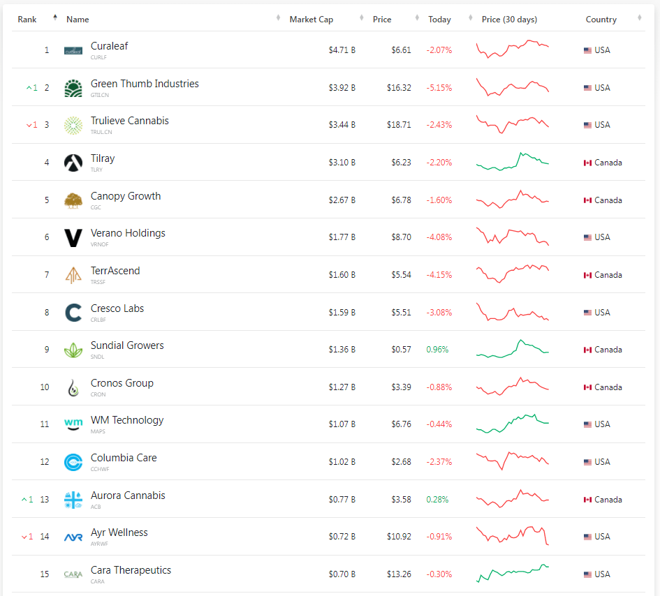 [7] Largest Cannabis Companies by Market Cap (CompaniesMarketCap.com, April 2022)