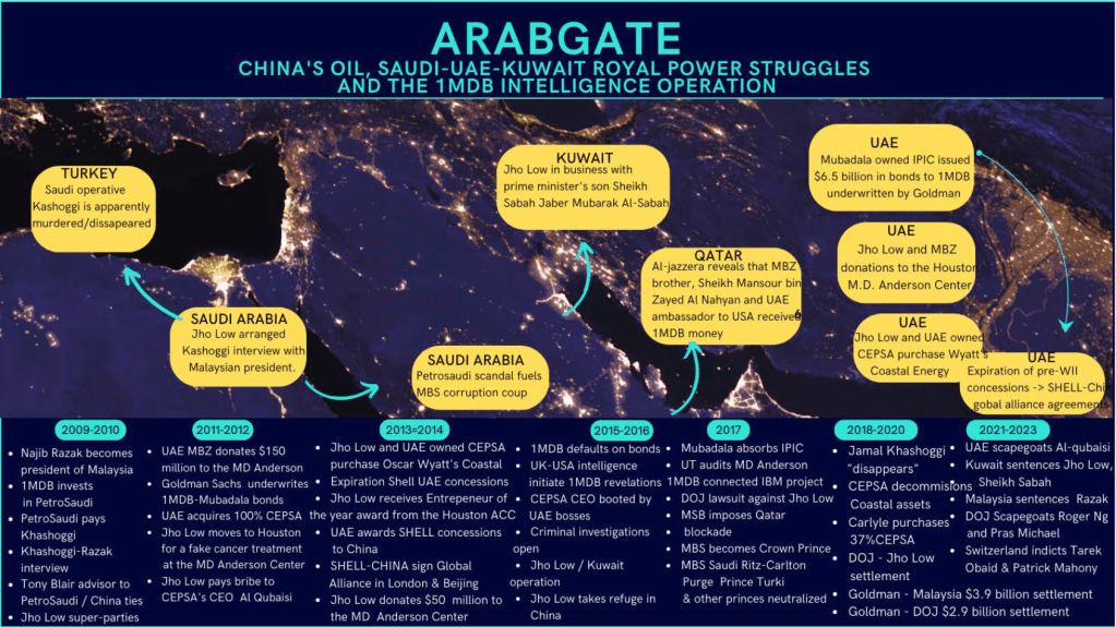 This article will explain some of the specific political objectives related to the 1MDB “scandal.” Decades ago, it was understood that creating a US-led extended petrodollar system that included China would necessitate a significant transformation of the Middle East. It was anticipated that this would involve transferring large oil and gas concessions in the Arabian Peninsula to Chinese National Oil Companies (NOCs). Additionally, it was expected that increased reliance on Arabian oil and gas would lead to polarization and direct confrontation with Iran, particularly because Iranian and Iraqi oil output would need to be suppressed for the extended petrodollar system to function effectively.